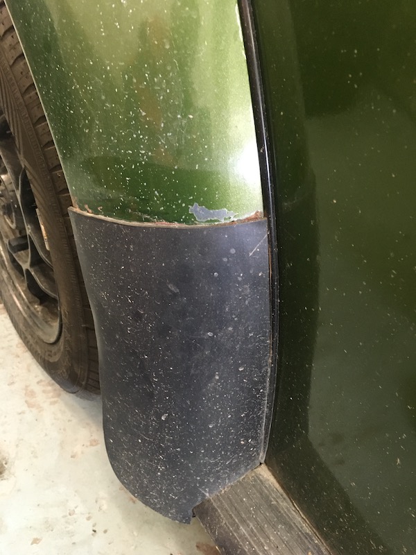 Toistaiseksi ainoa löytämäni ruostereikä. Kuskin puoleisen sisälokasuojan etupuolessa.