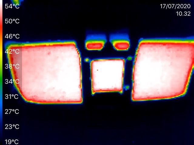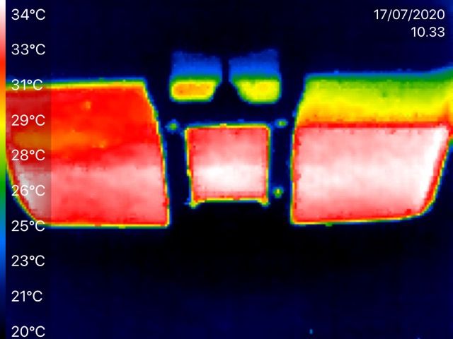 Tätä pohtiessa otin lämpökameran mukaan ja kävin katsomassa miltä näyttää kun noin 20 asteessa tilataan hyttiin kylmää.